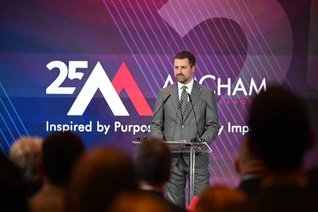 Пригоден говор одржа Иван Костиќ, Претседател на Одборот на Директори, кој ја истакна трансформацијата на АмЧам во изминатите 25 години, од бизнис асоцијација до кредибилен реформски партнер кој го поддржува креирањето на фер, транспарентно и конкурентно пазарно опкружување. „Овој јубилеј е потврда на континуитетот, визијата и заедништвото со кое ја градиме економијата и заедницата што сите ја посакуваме“, истакна Костиќ, повикувајќи ги компаниите да продолжат активно да придонесуваат кон поконкурентно и европски ориентирано деловно опкружување. Свое поздравно обраќање на настанот имаше и Дејвид Мајерс, вршител на должноста заменик-шеф на мисија во Амбасадата на САД во Скопје.