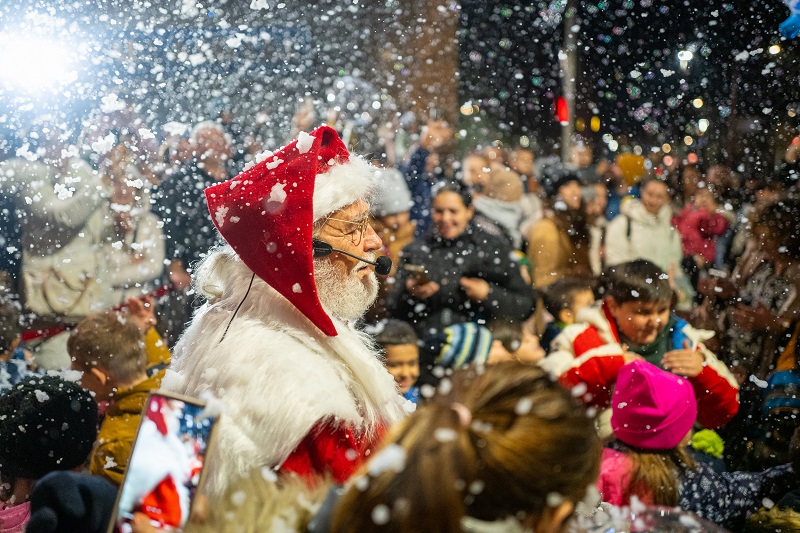 Од Северниот Пол директно на кровот на Skopje City Mall. Вчерашниот ден донесе вистински спектакл. Токму во моментот кога се запалија светлата на новогодишната елка и молот блесна во празничен сјај, посетителите беа изненадени од поглед што ретко се гледа: огромен балон на топол воздух кој се појави над градот, а во него, Дедо Мраз.