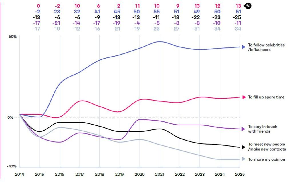 Во еден од најновите извештаи за однесувањето на потрошувачите – „GWI: Connecting the Dots 2026“, јасно се анализира една од најчесто повторуваните мантри во современиот маркетинг: дека социјалните мрежи се во пад или на пат кон ирелевантност. Но, податоците покажуваат спротивно.