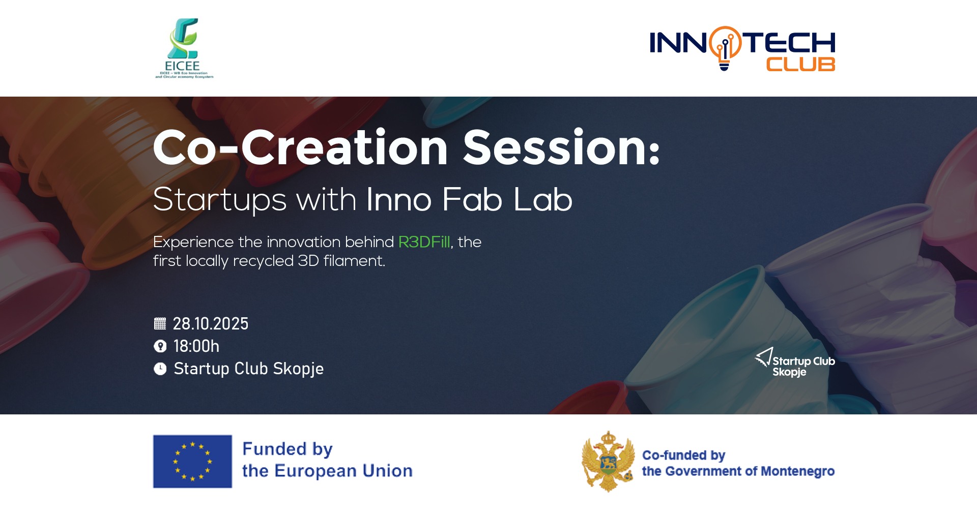 Овој настан е дел од проектот „Рециклиран филамент за 3Д принтање“, кој се спроведува во рамки на програмата „Екосистем за еко-иновации и циркуларна економија на Западен Балкан (EICEE)”, кофинансирана од Европската Унија и Владата на Црна Гора. Целта е поттикнување на иновацијата, одржливоста и практичната примена на принципите на циркуларната економија во стартап екосистемот во земјата.