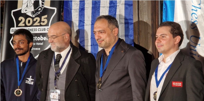 Романскиот претставник СуперЧес, предводен од светскиот првак Гукеш, иако четврти носител, на крајот како единствен непоразен тим и со само една загубена партија (и тоа во последното 7. коло) за првпат го освојува пехарот во Европскиот клупски куп со максимални 14 бодови. ШК Алкалоид на второто место има 12 бодови, колку и чешкиот Нови Бор, кој играше само со македонскиот шампион меѓу ривалите од првата петорка и го загуби тој дуел, но, сепак, на крајот стигна до шест победи и до бронзен медал.